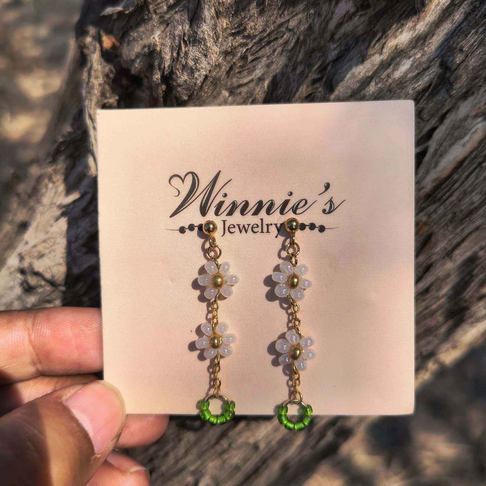 SKU: EAR0001 Category: Earrings Tags: daisy earrings, Earrings, White and Green, white daisy earrings